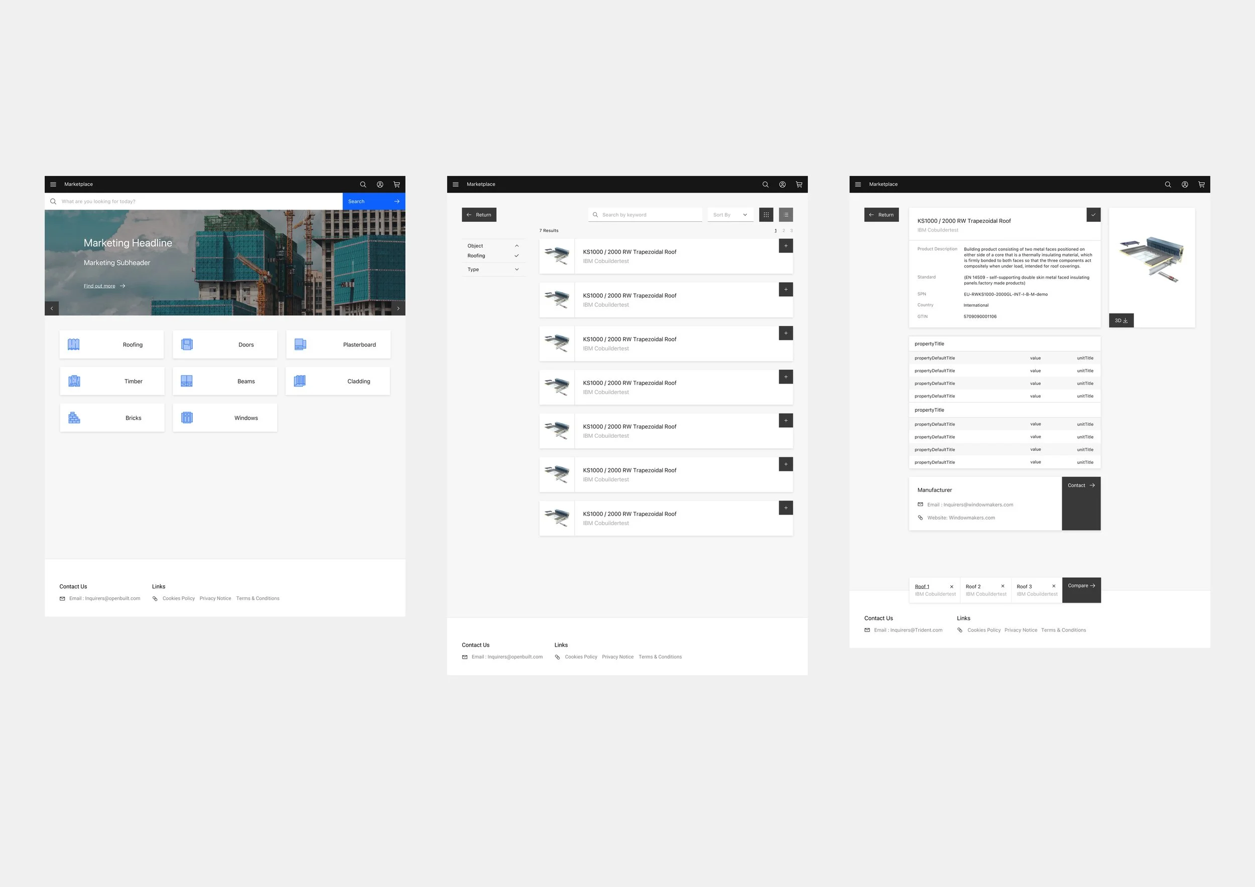 I presented the prototype to a range of potential clients, who helped shape the scope of the initial journey, such as adding the option to download 3D objects. During this phase, we partnered with Cobuilder, gaining access to their product data API, which allowed me to integrate the product information into the page designs.