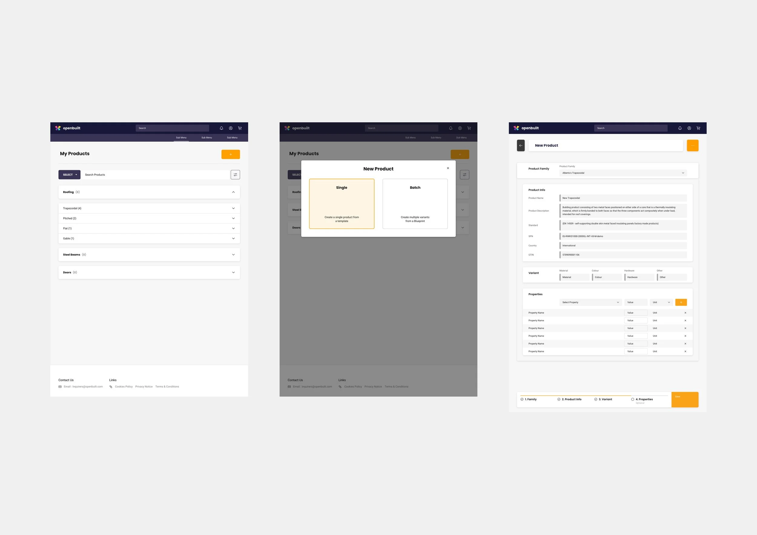 After developing the brand identity and design guidelines for Openbuilt, I created a design system in Sketch using the Atomic Design methodology. This provided a structured framework for future product development and improved collaboration and efficiency across the growing team. I then applied the design system to the evolving wireframes, transforming them into concept product visuals.