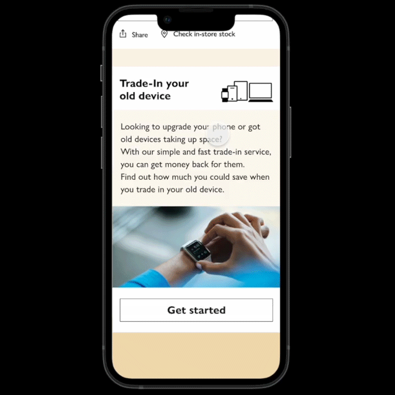 After the launch of the new Trade-in proposition we continued to refine the customer journey, including redesigning the entry point, supporting trade-in offers, and launching an in-store proposition.